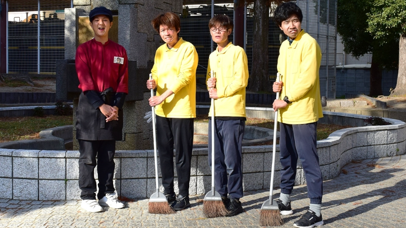 利用者の障がいをお持ちの方々が、地域の会社に頼まれて清掃を行っているほか、地域の公園の清掃を行ったり、空き缶の回収を通して、地域との交流を行っています。