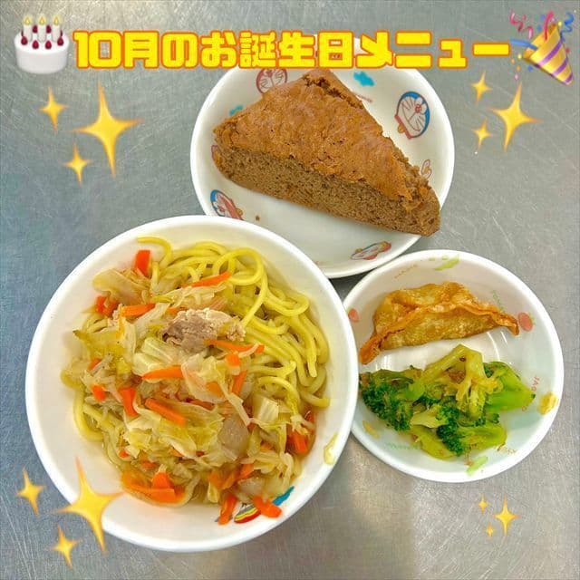 給食・・・・・・・・離乳食から幼児食までの給食・おやつは自園調理を行っています。また、個々に応じたアレルギー食にも対応しています。毎月の誕生会メニューや季節の行事食も提供しています