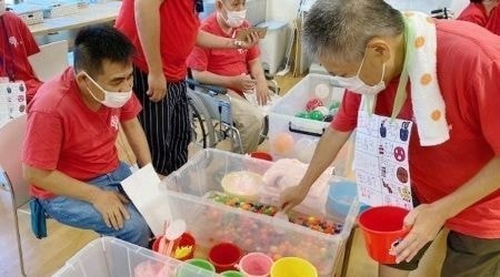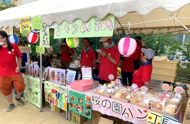市民スポーツ大会に参加したり、守口市内の事業所が出店するエーブルアート展に出店。桜の園は紙すき商品やパンを販売しています。